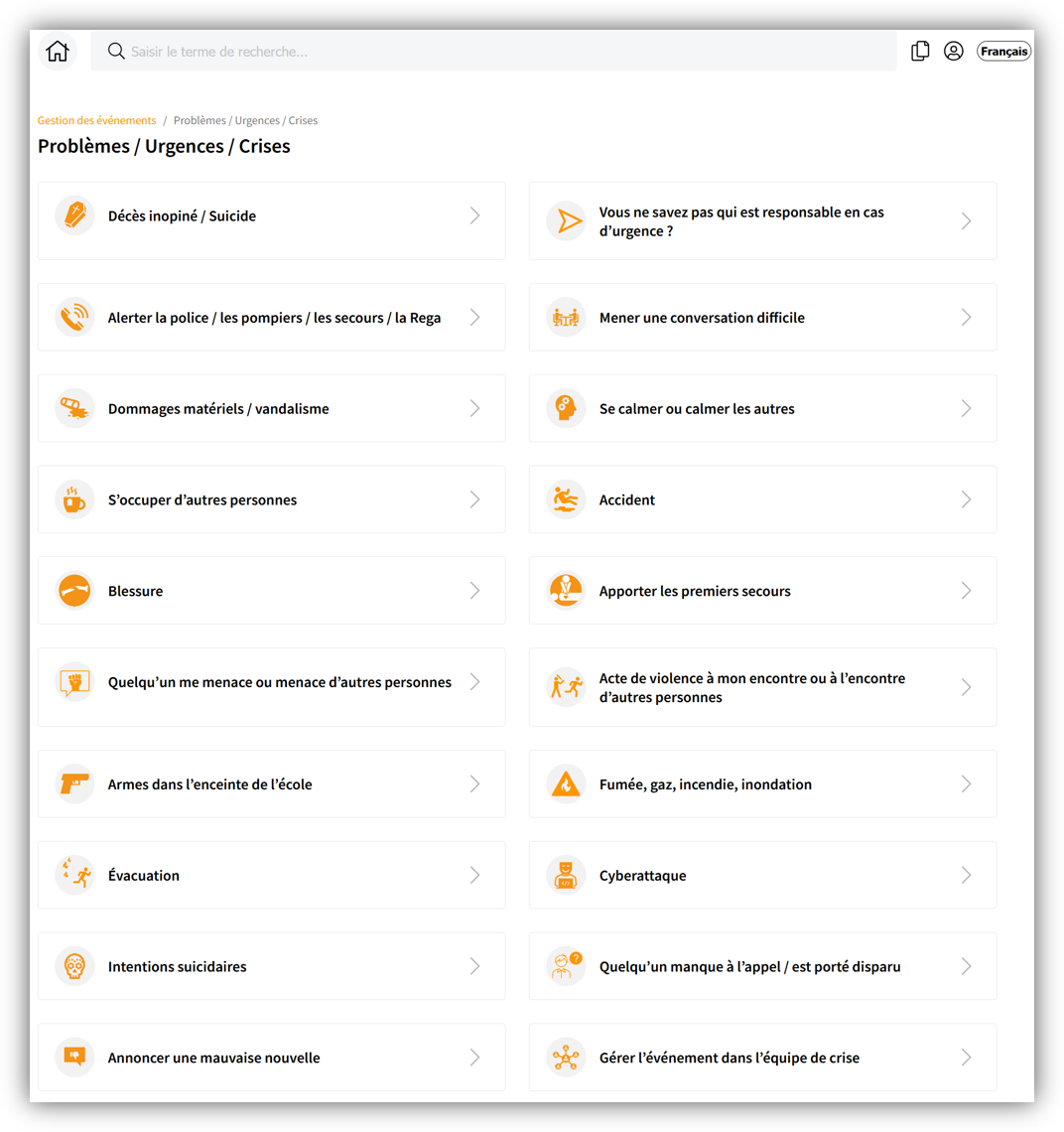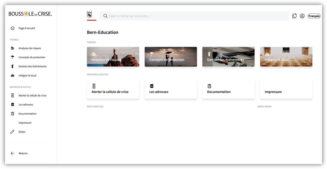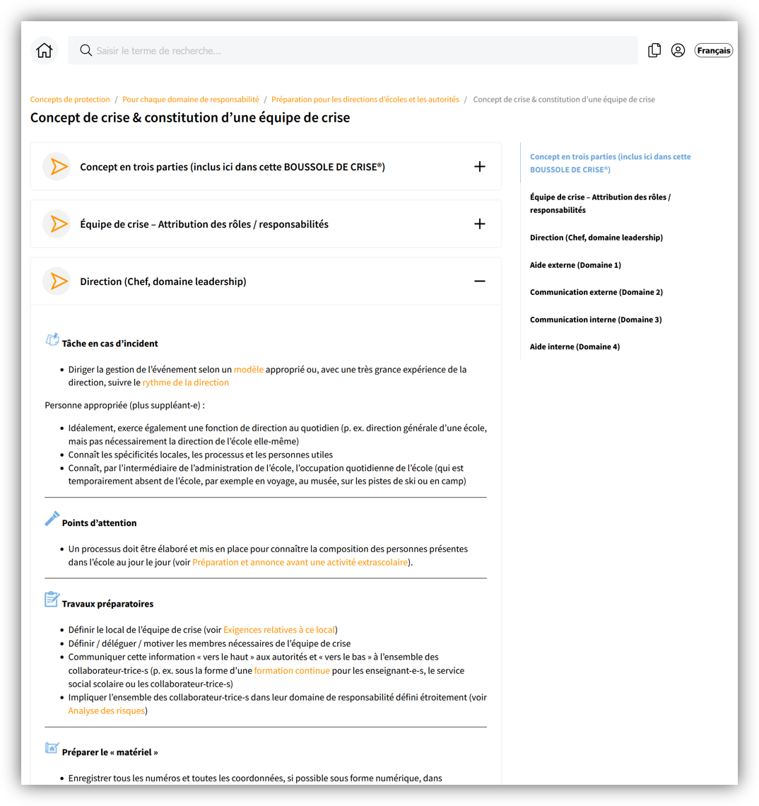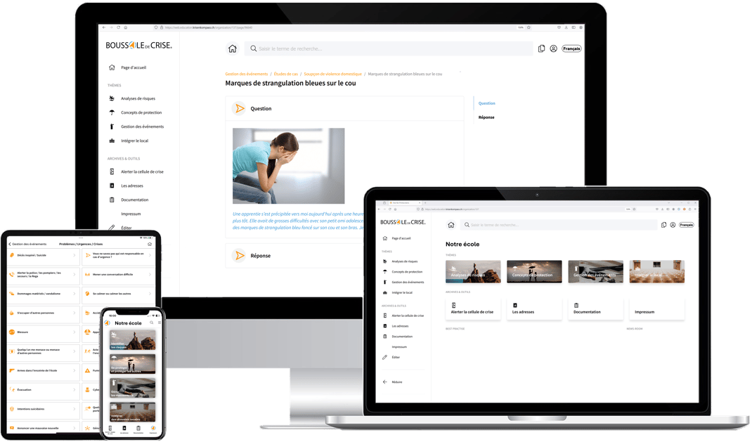 L'interface conviviale, les checklistes pédagogiques et la possibilité d'intégrer vos propres contenus font de la Boussole de Crise un outil d'expert incontournable qui vous assiste efficacement dans les écoles primaires et professionnelles, les gymnases, les écoles