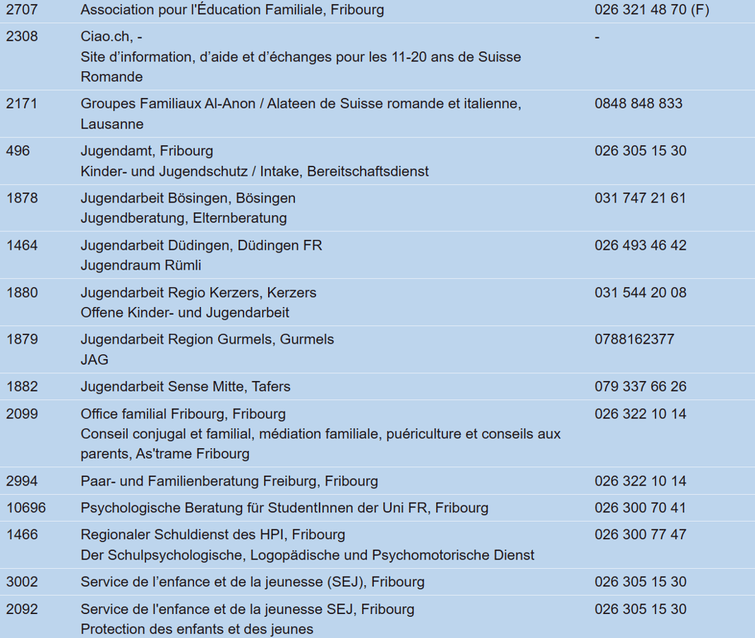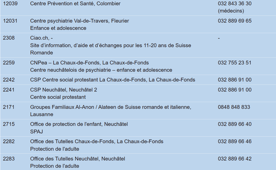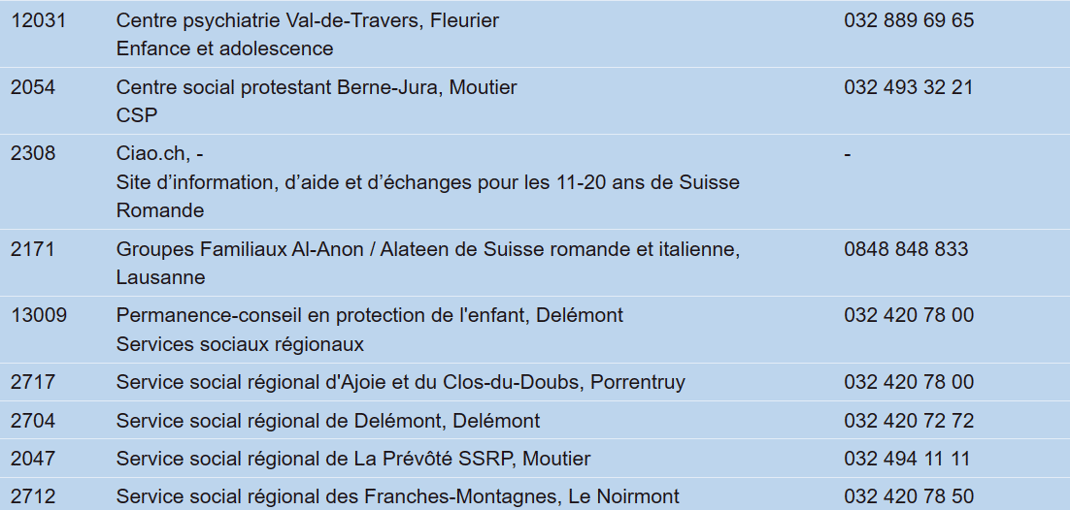 cas de risque de suicide, aucun délai d'attente ne doit être accepté ! Dans ce cas, il faut absolument organiser un soutien professionnel dans les plus brefs délais ! p.ex. via